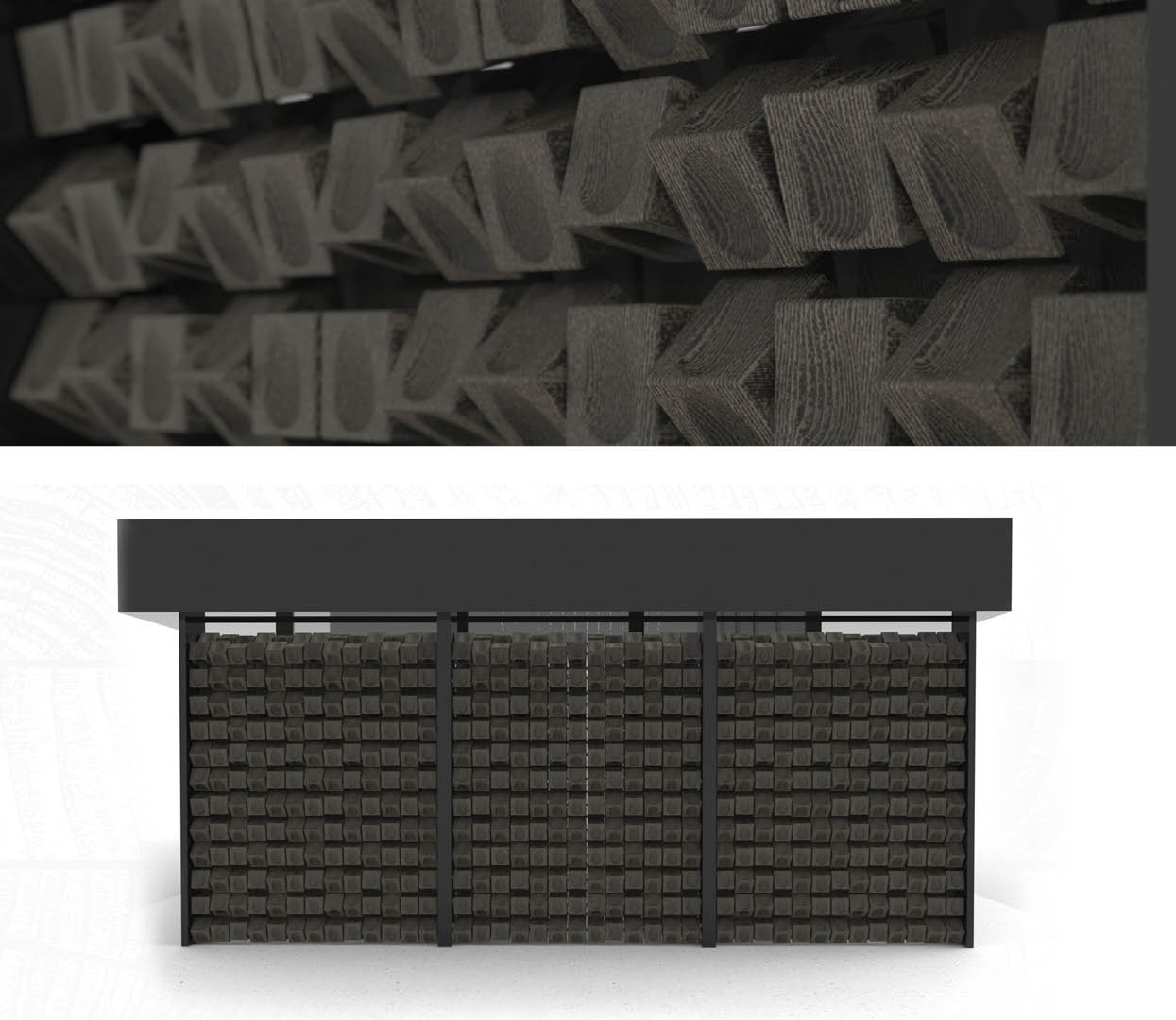 Henri Judinin ideoima Elävä seinä on sekä esteettisesti tyylikäs että teknisesti oivaltava työ. Elävässä seinässä on ihastuttavalla tavalla hyödynnetty puumateriaalin ominaisuus reagoida kosteuden kanssa. Ominaisuus, joka koetaan usein haasteelliseksi ja puun käyttöä rajoittavaksikin tekijäksi, on työssä nähty positiivisena asiana. Suunnittelija on tutkinut puumateriaalia ennakkoluulottomasti ja lopputuloksessa säilyy kiinnostavalla tavalla elävän luonnonmateriaalin vapaus, tarve liikkua ja muuttua.